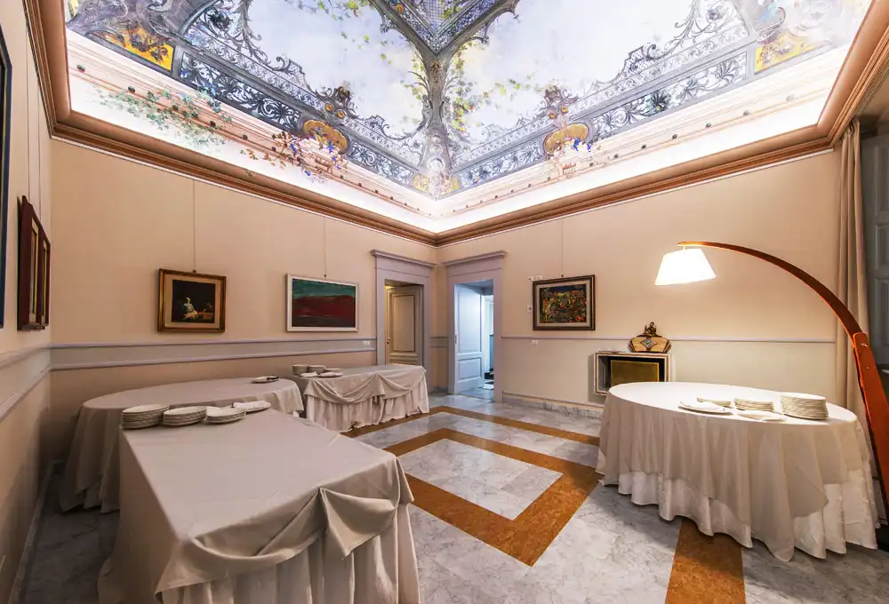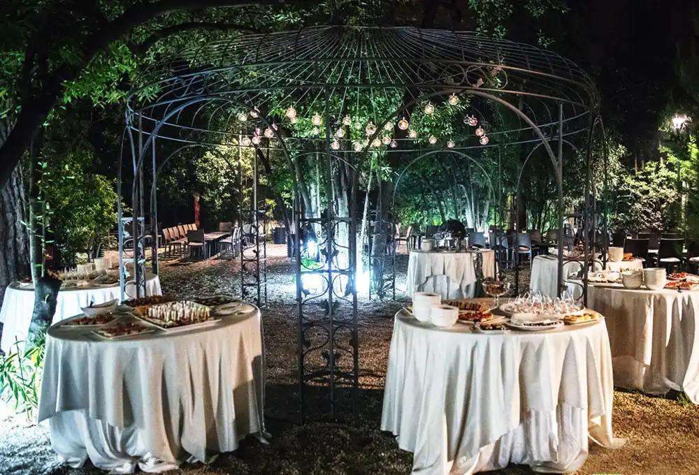 Ambienti, interni ed esterni, ognuno con particolari caratteristiche, come lo scalone, la stanza del principe, il grande e lussuoso salone, il cortile delle sculture per l’aperitivo, l’ombroso e suggestivo giardino all’inglese per il dessert. Villa Paris è lieta di accogliere i vostri ospiti.